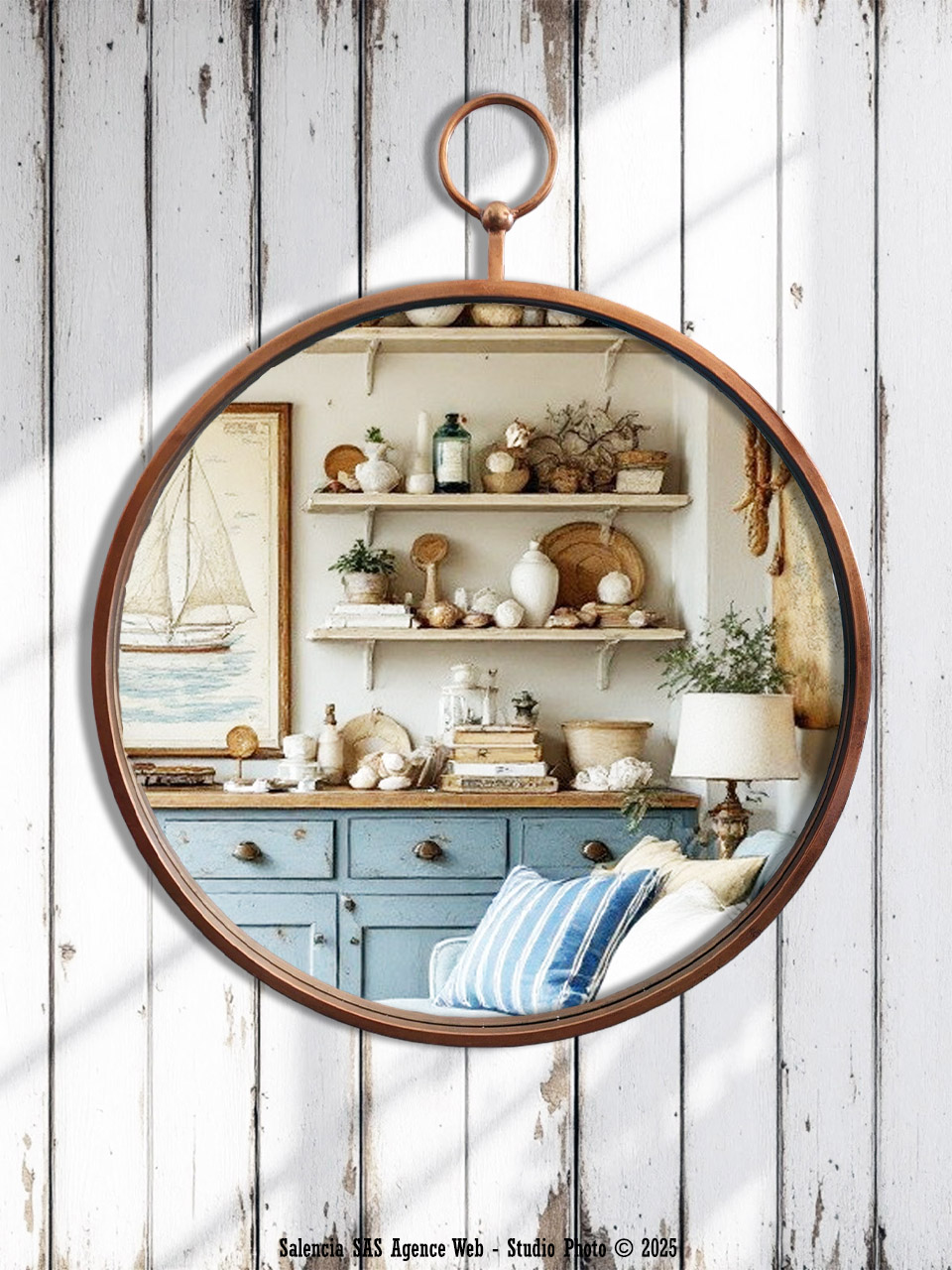 Miroir Gousset bord cuivré