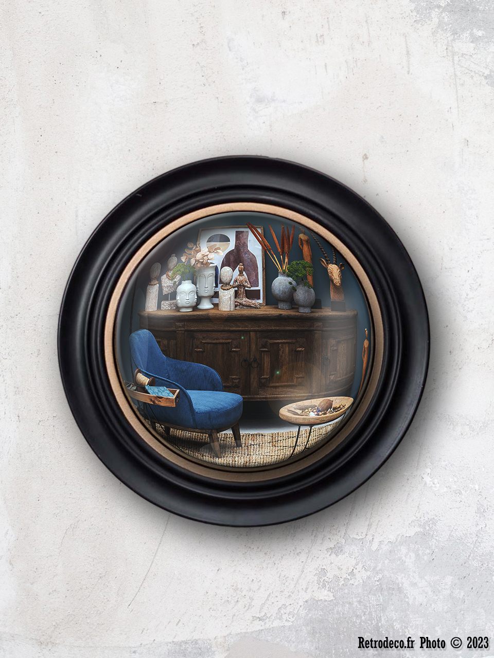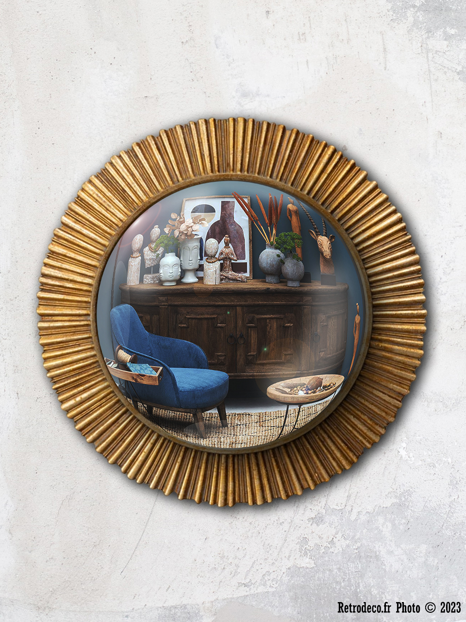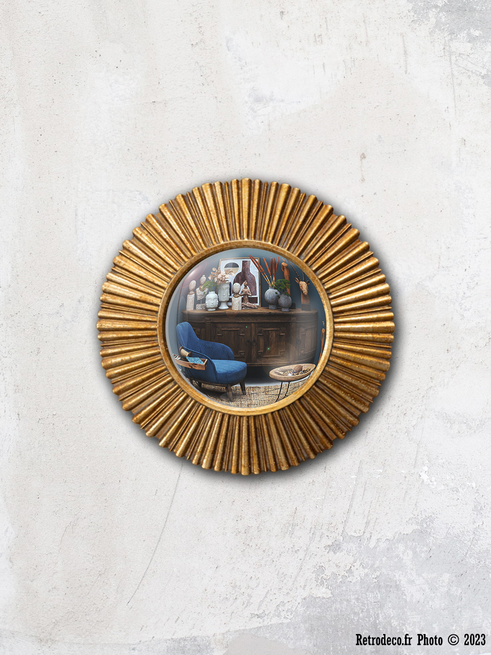 Miroir convexe doré bords lignés Sanctus 25cm