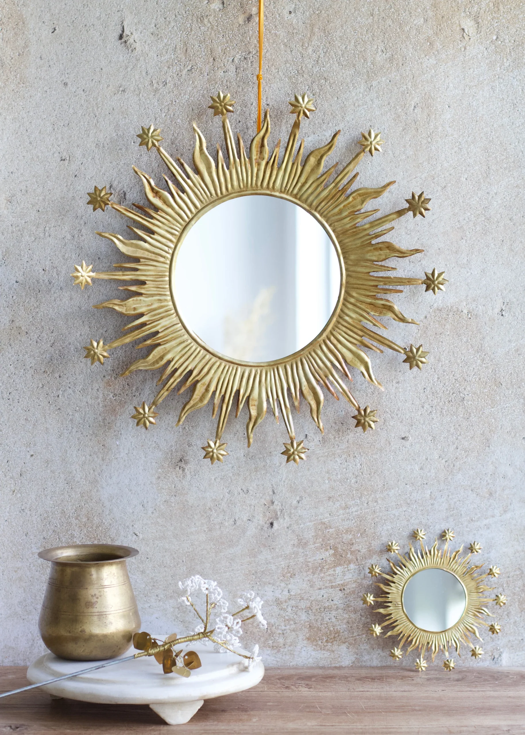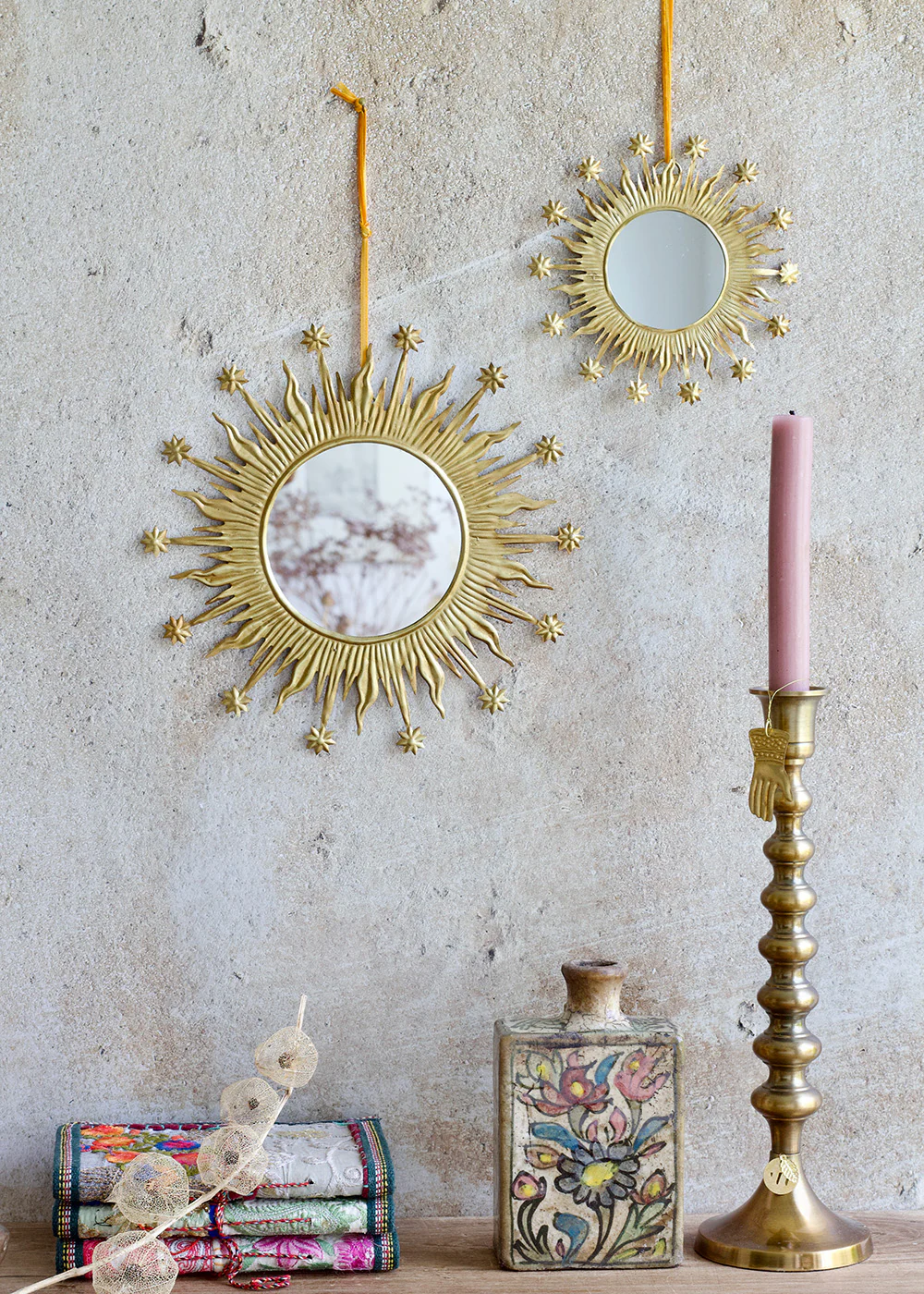 Les miroirs à  la fois utiles et accessoires de décoration indispensables sont un élément clé de votre intérieur. Qu’ils soient ronds, rectangulaires, carrés, en métal ou en bois, nos miroirs de styles variés aussi bien charme, brocante, industriel que ethnique chic, vous enchanteront par leur design, leur patine et leur qualité de fabrication. Vous pourrez en mettre dans votre entrée, votre chambre, votre salon ou même votre salle de bain … ils vous serviront et raviront vos visiteurs. Nous vous conseillons plus particulièrement les miroirs de sorcière et les miroirs convexes de la marque Chehoma. Pour des modèles plus grands, vous pouvez consulter notre sélection de grands miroirs dans la rubrique meubles.