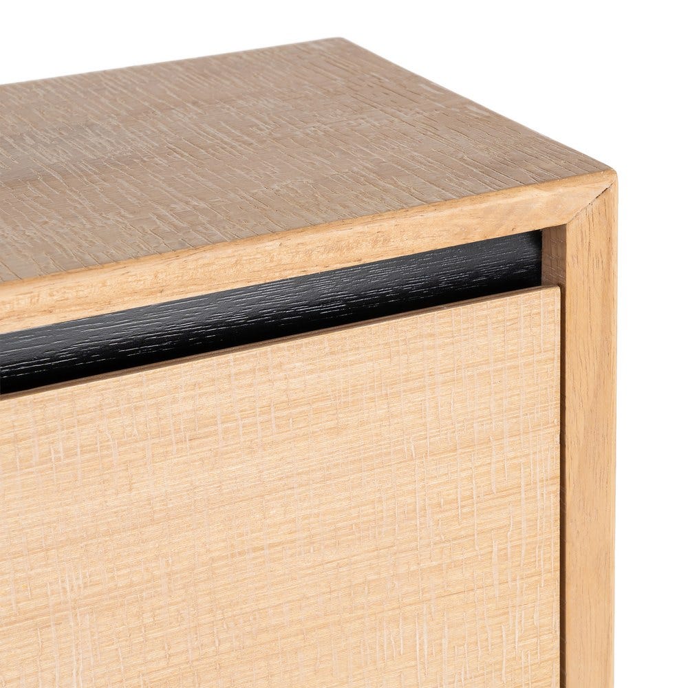 Par ailleurs, son esthétique s’intègre idéalement à un univers déco scandinave. Le duo Bois et Métal noir sur les pieds génère un effet contrasté et raffiné. Les pieds en fer, culminant à 11,5 cm, offrent une impression de légèreté et simplifient l’entretien du sol. Les tiroirs de 56×33 cm sont dimensionnés pour des chaussures jusqu’à la pointure 40, rendant ce meuble ingénieux et performant. Cette armoire Ixia convient parfaitement à un espace privilégiant formes épurées, tons neutres et efficacité.