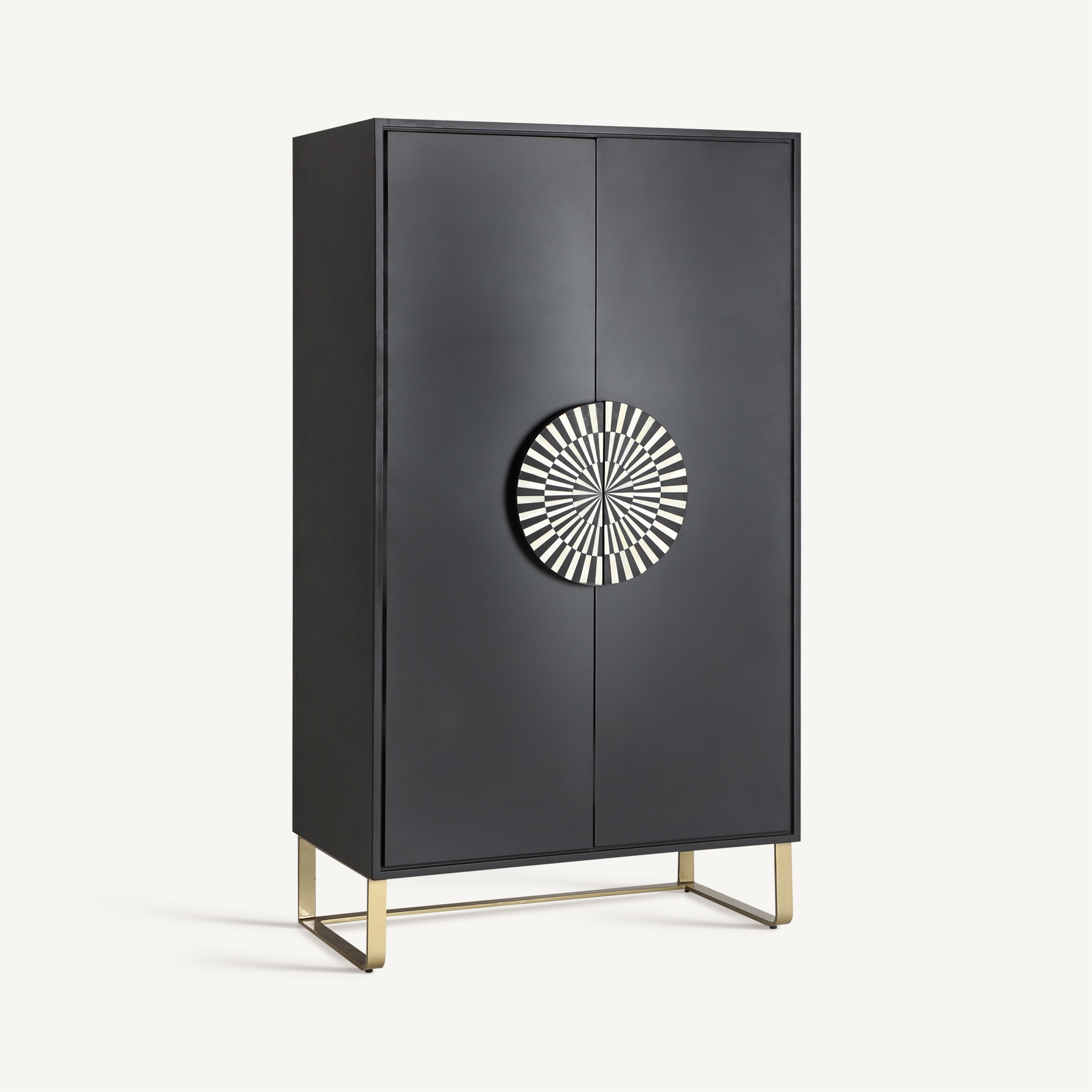L’armoire Gatsby de la marque Vical allie des matériaux nobles comme le métal, le bois et l’os pour un design raffiné et sophistiqué. Sa finition dorée contrastant avec des détails en noir crée un look à la fois élégant et exotique, parfaitement adapté à une déco ethnique chic.