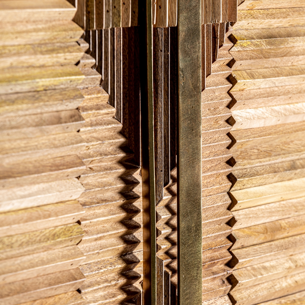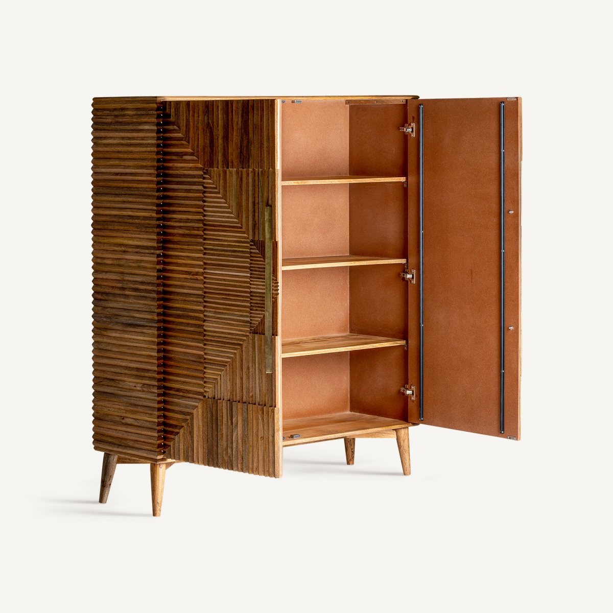 L’armoire Plissé Wood Brown ne se contente pas d’être esthétiquement plaisante ; elle offre également une grande fonctionnalité. Dotée d’étagères spacieuses et d’un agencement intérieur bien pensé, elle permet de ranger vêtements, accessoires ou autres objets personnels de manière ordonnée et élégante. La robustesse du manguier garantit une durabilité exceptionnelle, tandis que les détails en métal ajoutent une touche industrielle chic. Ce mariage de matériaux crée un contraste intéressant et renforce l’unicité de la pièce. Parfaite pour une chambre, un salon ou même un bureau, cette armoire apporte une dimension nouvelle à votre espace, alliant praticité et style.