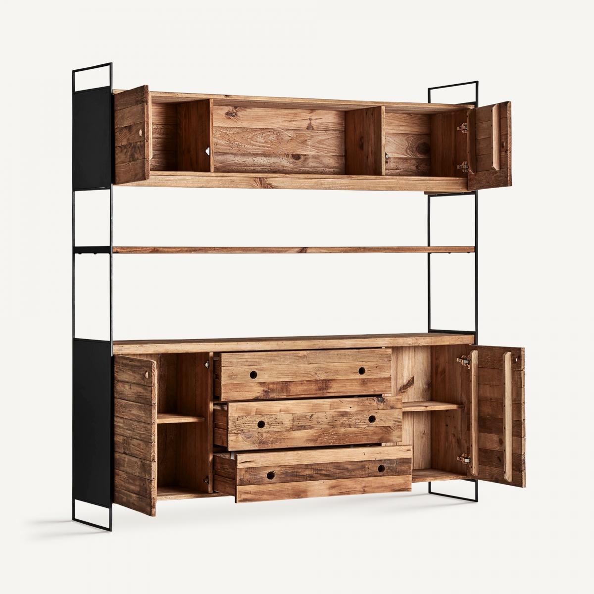 La bibliothèque Crissey est conçue pour s’adapter à divers environnements, que ce soit un salon, un bureau ou même une cuisine. Ses étagères en pin offrent une grande capacité de stockage, idéale pour organiser vos livres, objets de décoration ou fournitures. La structure en métal assure une stabilité et une durabilité exceptionnelles, faisant de cette bibliothèque un choix fiable pour un usage quotidien. L’association du bois de pin et du métal crée un contraste harmonieux qui s’intègre parfaitement dans une ambiance atelier, où les matériaux bruts et les lignes épurées sont à l’honneur.