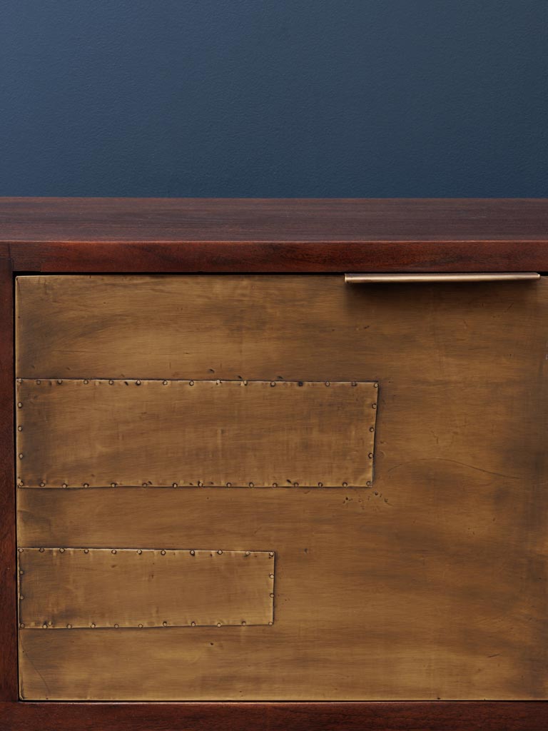 Avec ses détails en laiton, le buffet 2 portes 2 tiroirs Saïgon réussit à marier tradition et modernité. Le contraste entre le bois de manguier et le laiton crée une harmonie visuelle qui capte immédiatement l’attention. Les poignées en laiton doré apportent une touche de luxe discrète, tandis que la solidité du manguier assure une durabilité à long terme. Chaque pièce de ce buffet est soigneusement travaillée pour offrir une finition impeccable, mettant en valeur les nuances naturelles du bois et les reflets dorés du laiton. Le design du buffet Saïgon est à la fois intemporel et contemporain, s’intégrant aisément dans divers styles de décoration, que ce soit dans un salon, une salle à manger ou même une entrée.