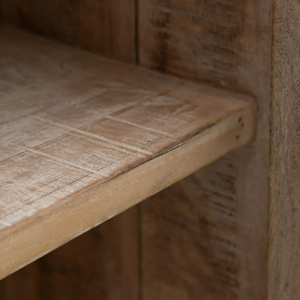 Fabriqué en manguier, ce buffet se distingue par sa robustesse et son charme naturel. Le bois massif lui confère une grande solidité tout en affichant un grain unique qui sublime sa finition beige. Ses portes à panneaux encadrés et ses poignées discrètes renforcent son style intemporel, rappelant les meubles traditionnels des maisons de campagne. Grâce à sa patine subtile, il s’harmonise facilement avec différents styles de décoration.