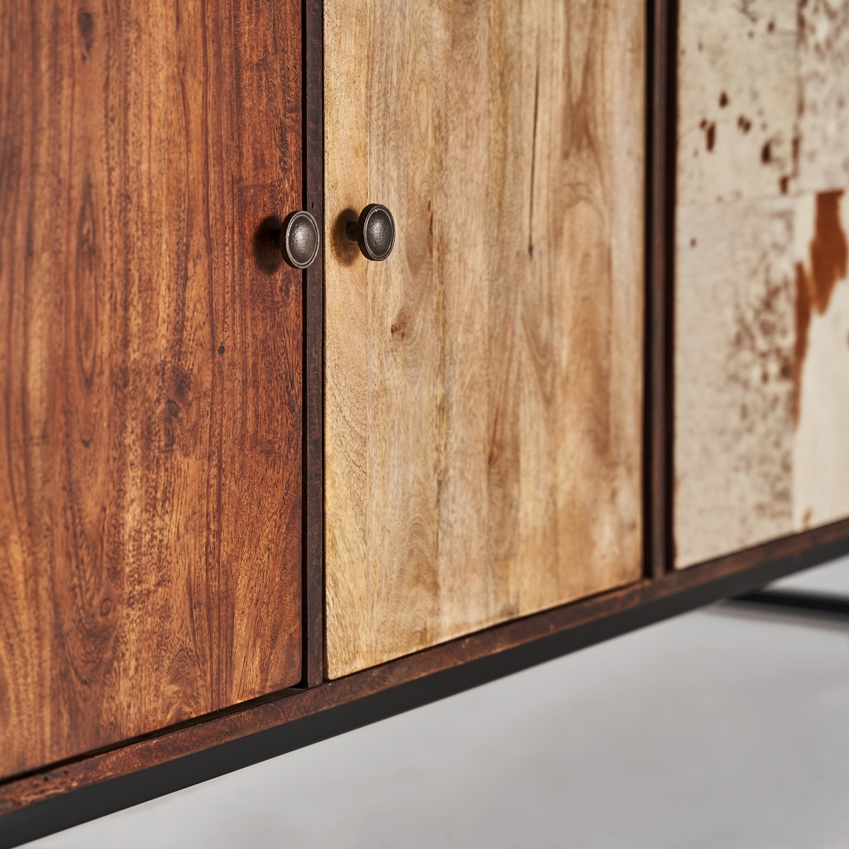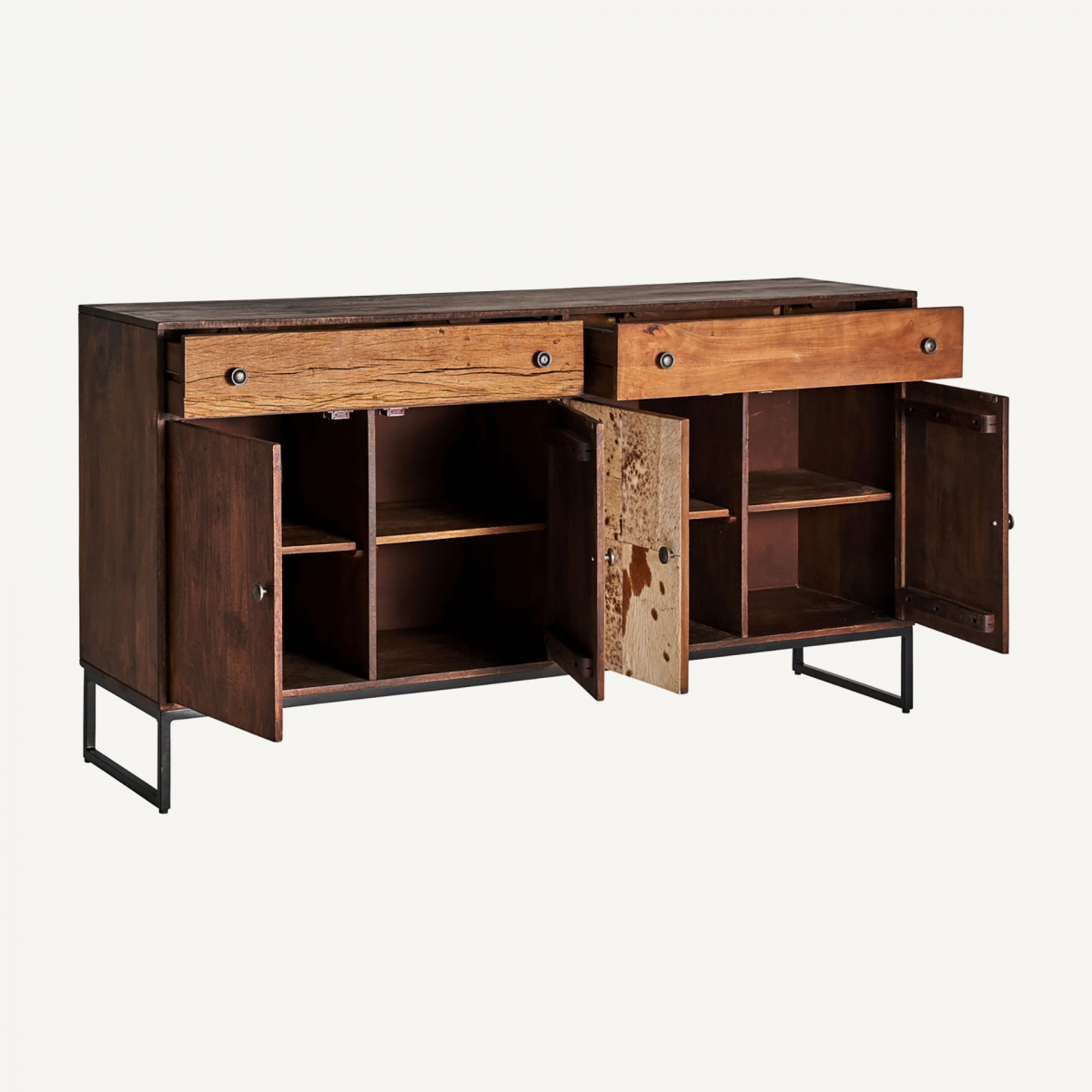 Le buffet Texas Peau de vache de Vical est une pièce de mobilier qui marie harmonieusement la robustesse et l’élégance, parfaitement adapté à une ambiance déco montagne. Conçu en cuir et manguier, ce buffet incarne l’essence même de la rusticité sophistiquée.