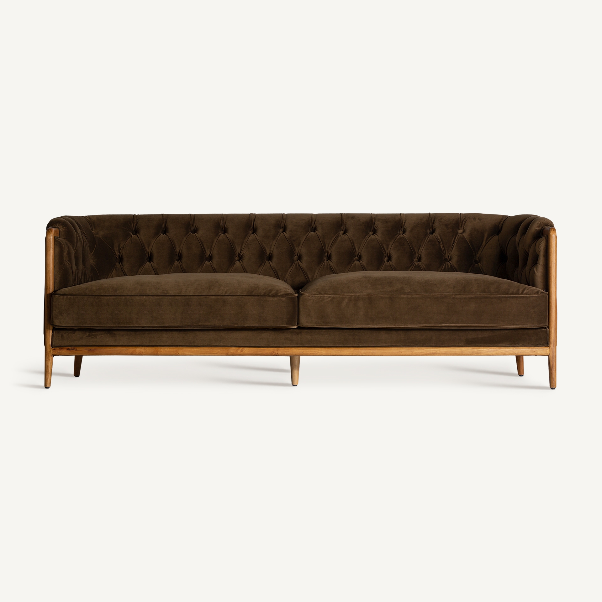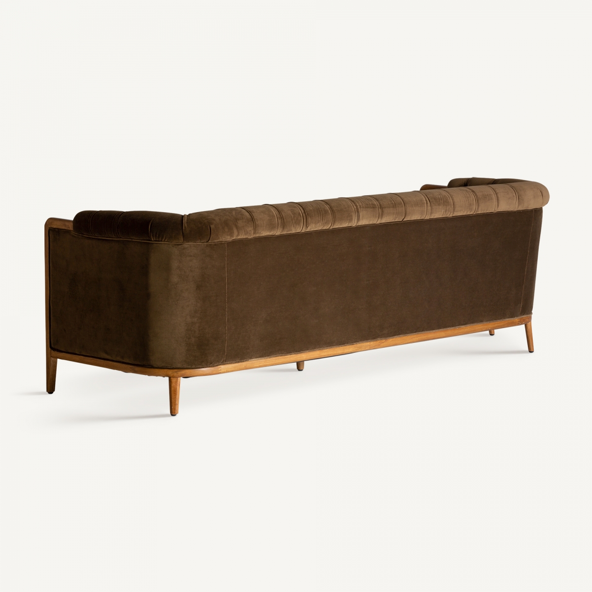 Le canapé Velburg de la marque Vical est un modèle incontournable pour les amateurs de mobilier au style déco vintage. Son revêtement vert intense, associé à une structure en bois d’hévéa, fait de ce canapé un véritable hommage aux designs des années passées, tout en intégrant des éléments modernes.