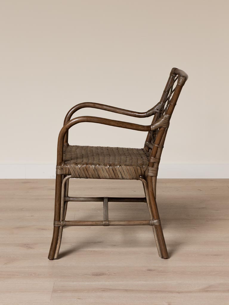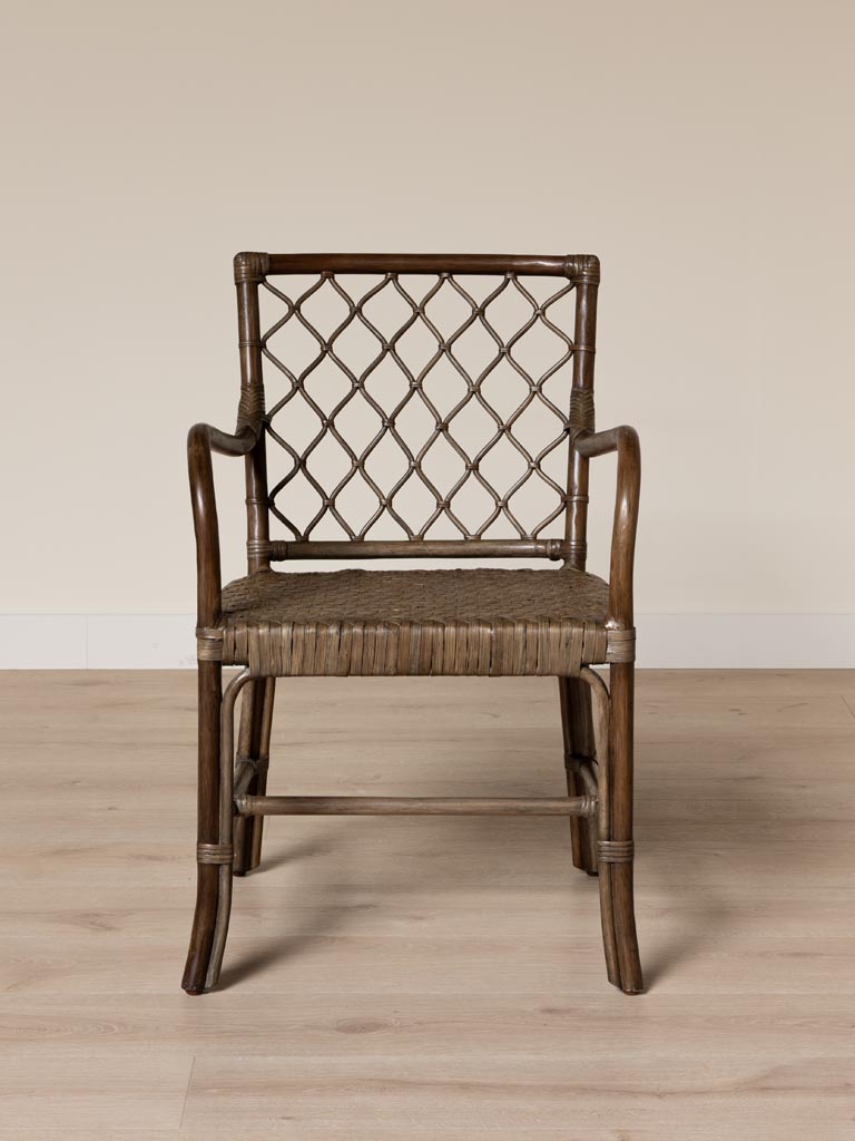 De plus, cette teinte marron riche et veinée s’épanouit dans une déco ethnique chic, où le rotin entrelacé s’accorde avec des touches nomades pour une vibe bohème sophistiquée. Les accoudoirs façonnés artisanalement rappellent les galeries tropicales ou les bungalows indonésiens, se mariant à des nappes en fibres naturelles, des corbeilles tressées ou des poteries texturées. Son tissage aéré favorise une circulation d’air lors des déjeuners d’été, et sa conception monobloc assure une solidité sans fixations visibles. Elle forme ainsi des compositions fluides alliant soutien ergonomique et style instinctif, propice aux repas partagés ou aux instants de quiétude.