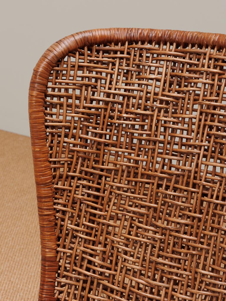 Avec sa structure en métal durable et son assise confortable en rotin tissé, la chaise Melati combine durabilité et esthétique, assurant une longue durée de vie. Sa couleur marron ajoute une touche de naturel et de chaleur, créant un contraste harmonieux avec divers styles de décoration intérieure. Que ce soit dans le salon, la salle à manger ou même la chambre, cette chaise apportera une touche unique et élégante à votre décoration. Le design épuré et les motifs attrayants en font un élément précieux, capable de sublimer n’importe quel environnement. Les motifs ethniques et les matériaux de qualité offrent une dimension visuelle intéressante, rappelant les voyages exotiques et les cultures lointaines.