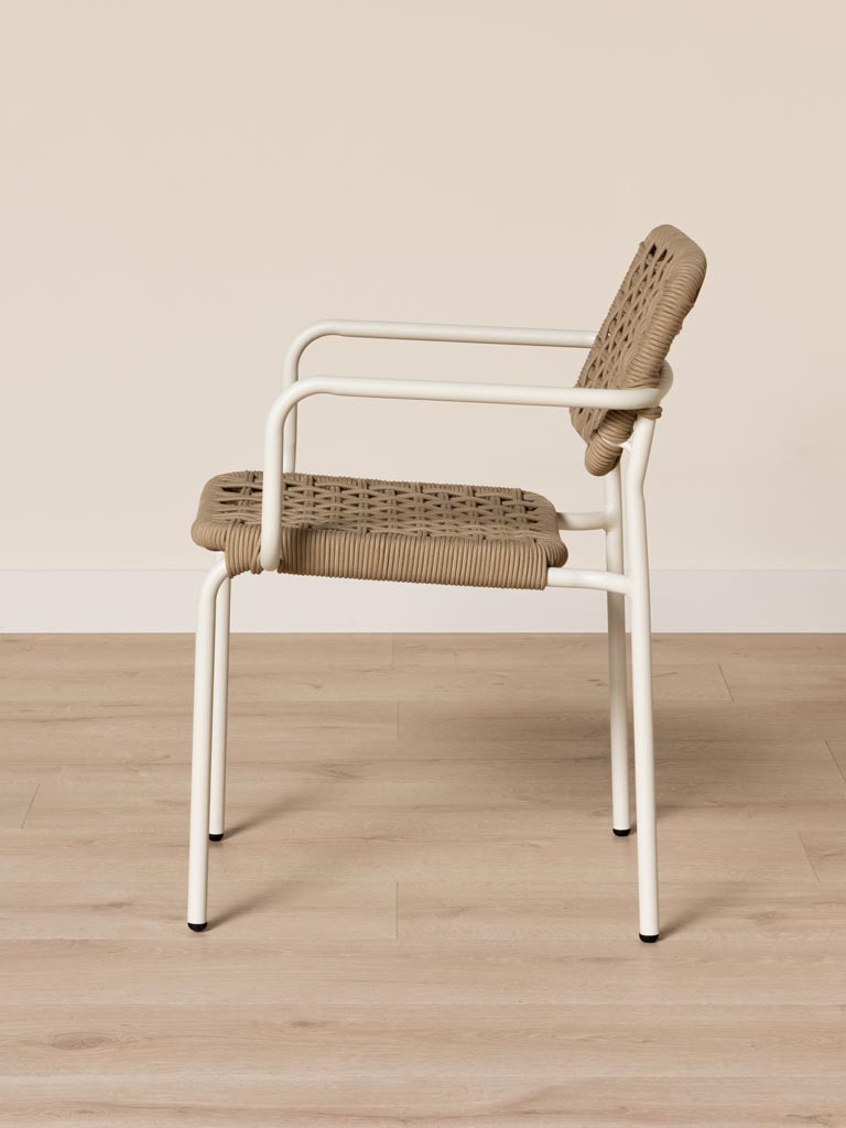La chaise Riviera incarne avec élégance le style harmonieux et sophistiqué des meubles Chehoma. Son esthétique minimaliste et sa réalisation minutieuse en font un objet à la fois contemporain et éternel. La charpente en aluminium assure solidité et finesse, parfaite pour les intérieurs ou les extérieurs. L’assise en corde tressée offre une touche veloutée et organique, idéale pour des espaces baignés de lumière. Les tons blanc et beige instillent calme et authenticité. Avec ses contours épurés et sa forme gracieuse, la chaise Riviera s’harmonise avec tous les environnements. Chaque pièce Chehoma allie avec finesse utilité et esthétique dépouillée, emblème du mobilier actuel.