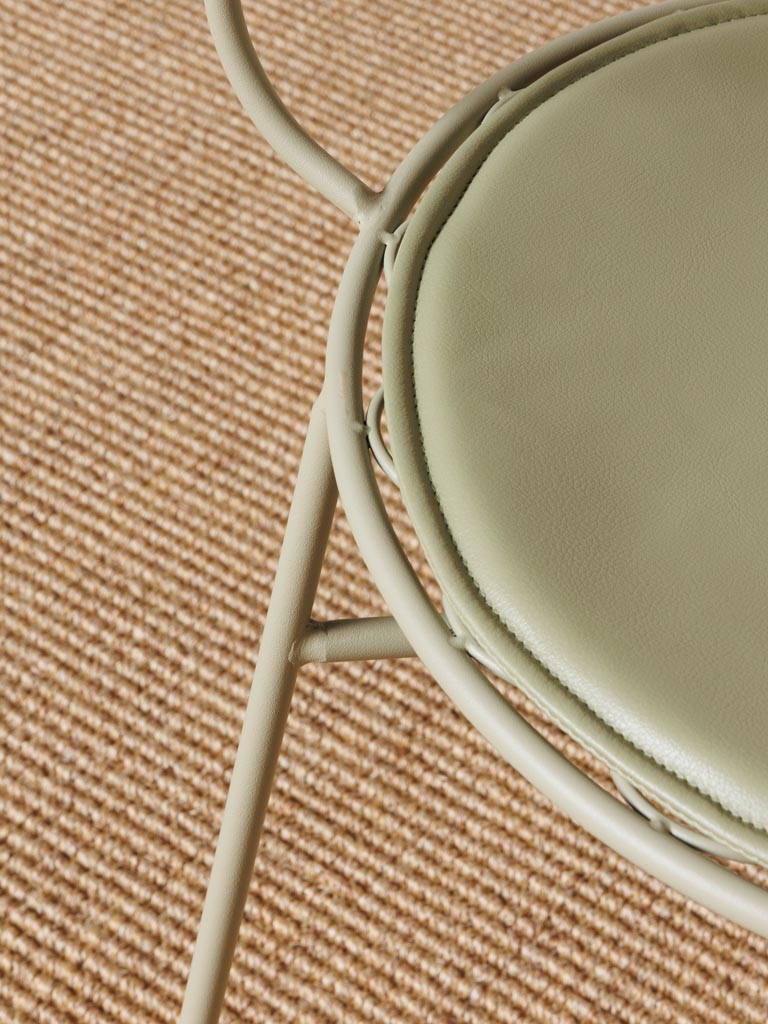 Sa couleur vert pastel douce et apaisante crée une ambiance douce et accueillante, rappelant les teintes délicates et subtiles de l’époque vintage. Les lignes épurées et le design classique de cette chaise lui confèrent un charme authentique, tandis que sa construction en métal assure durabilité et solidité.