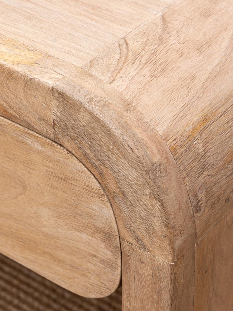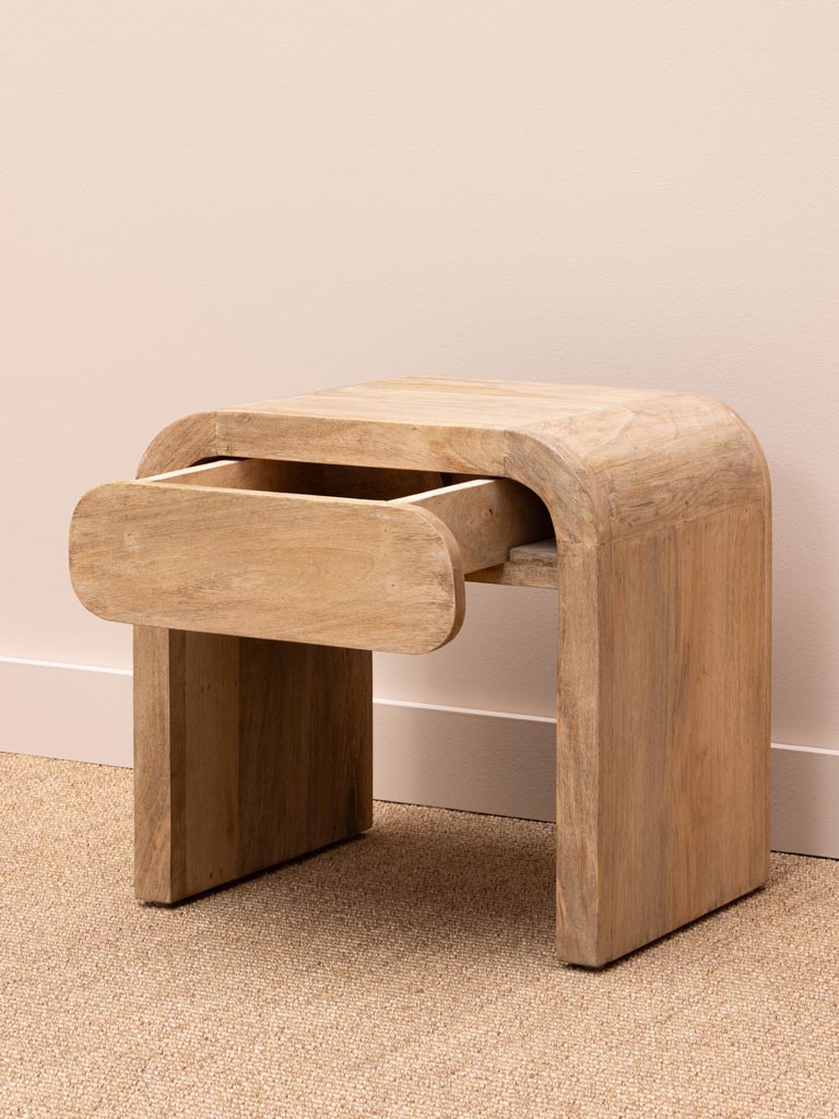 Positionné auprès d’un lit ou d’un siège, le chevet Losail s’impose comme un allié fonctionnel et esthétique. Sa structure en Manguier apporte une texture vivante qui sublime les intérieurs. Le tiroir intégré range habilement les essentiels quotidiens, préservant un ordre impeccable. Il se marie à merveille avec des textiles naturels tels que le lin, la laine ou le rotin, amplifiant l’atmosphère déco scandinave. Sa teinte beige invite les associations avec des palettes neutres ou pastel. Ainsi, il s’adapte sans effort à divers styles et ambiances.