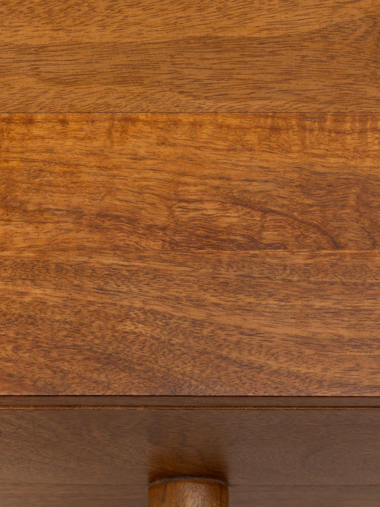 Chaque détail du chevet Aubin reflète l’engagement de Chehoma pour la qualité et le design. Le bois de manguier, apprécié pour sa solidité et sa beauté naturelle, est finement travaillé pour révéler des textures et des nuances uniques. Sa couleur marron intense crée une ambiance chaleureuse et accueillante, rappelant les meubles d’antan. Les lignes épurées et les angles légèrement adoucis du chevet Aubin évoquent le style vintage, tout en s’adaptant aux intérieurs modernes. Ce mélange subtil de tradition et de contemporanéité fait de ce meuble un choix parfait pour ceux qui souhaitent apporter une touche rétro chic à leur espace. Que ce soit dans une chambre parentale, une chambre d’amis ou même un salon, le chevet Aubin trouve sa place avec élégance.