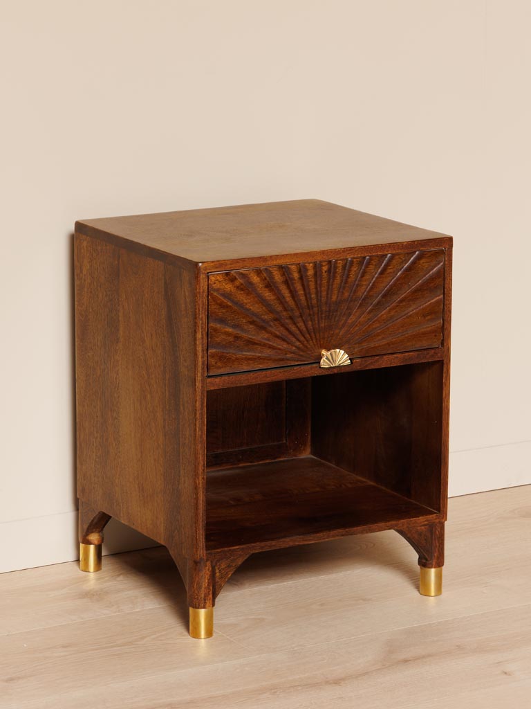 Chevet tiroir sculpté Soléar Manguier