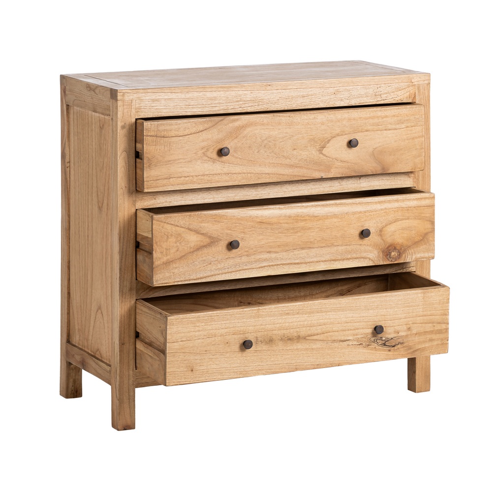 Par ailleurs, la commode beige mindi 3 tiroirs Evok ne se limite pas à son esthétique raffinée, elle offre également de nombreux avantages pratiques pour le quotidien. Grâce à la robustesse du Mindi, cette commode garantit une excellente stabilité et une grande longévité, permettant de ranger vêtements, linge de maison ou accessoires sans craindre l’usure du temps. Les trois tiroirs spacieux offrent un espace de rangement optimal, tout en restant faciles à manipuler grâce à des poignées discrètes et ergonomiques. La teinte Beige facilite l’association avec des lampes en céramique, des paniers en osier ou des cadres en bois, renforçant ainsi l’esprit déco scandinave recherché. De plus, l’entretien de cette commode IXIA est simple : un chiffon doux suffit pour préserver l’éclat du bois et conserver la beauté du meuble au fil des années.