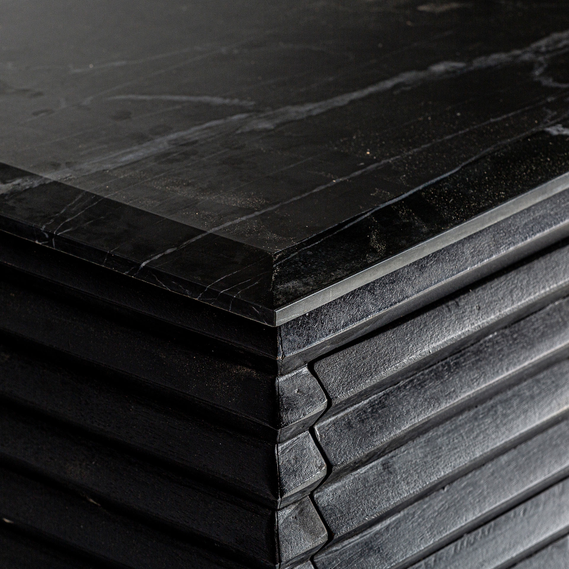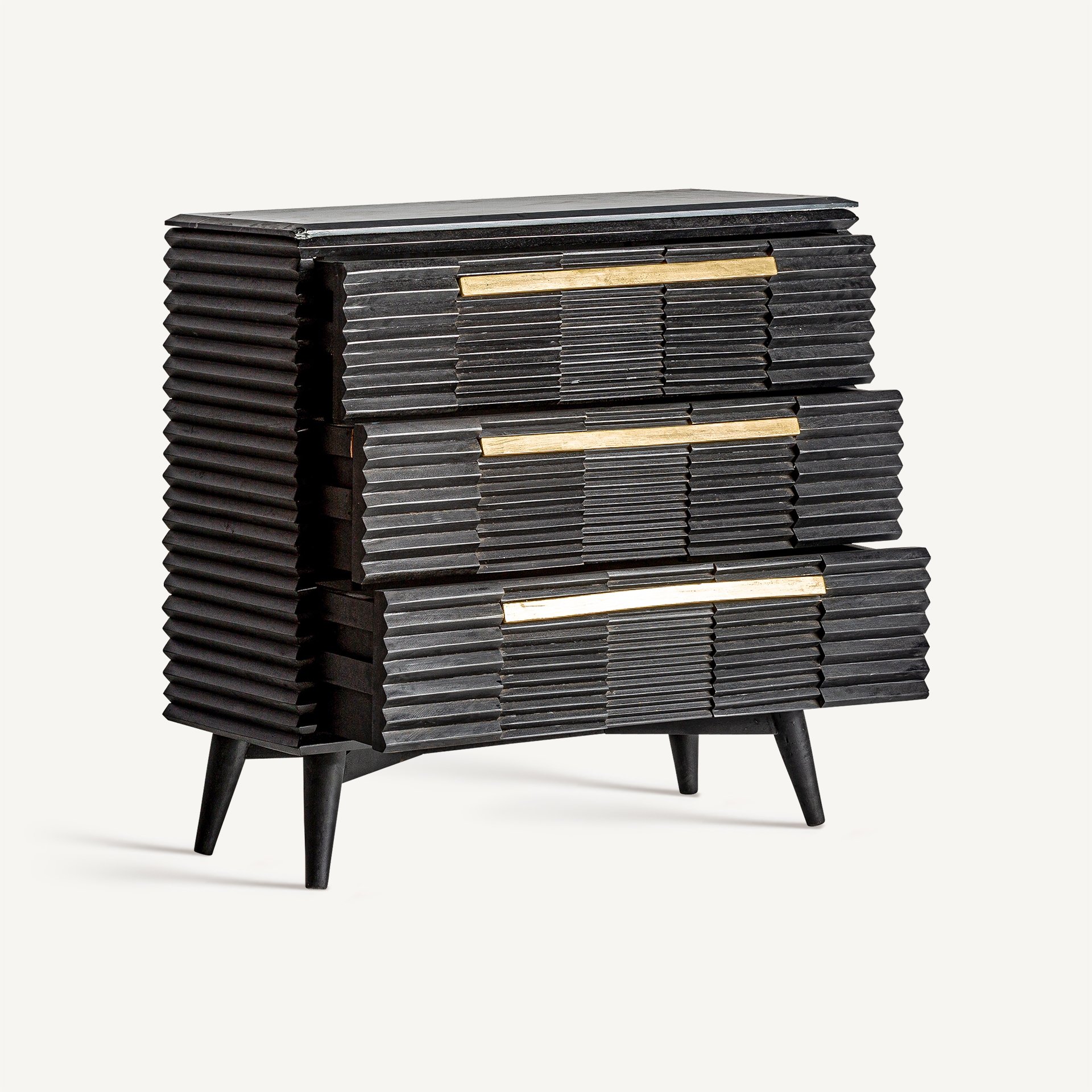 La commode Plissé Wood Black de la marque Vical est un véritable bijou de design, associant le charme du manguier au caractère audacieux du métal et la noblesse du marbre. Sa finition en noir profond, élégante et moderne, lui permet de s’intégrer harmonieusement dans une décoration au style vintage.