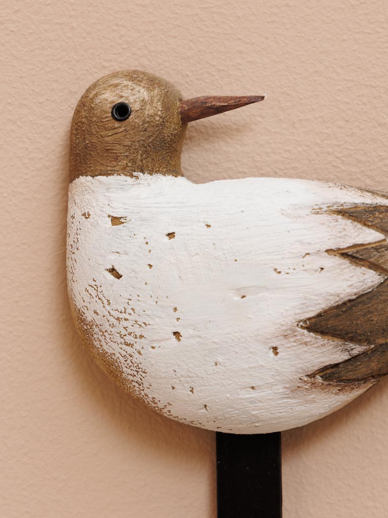 Crochet oiseau blanc bois naturel