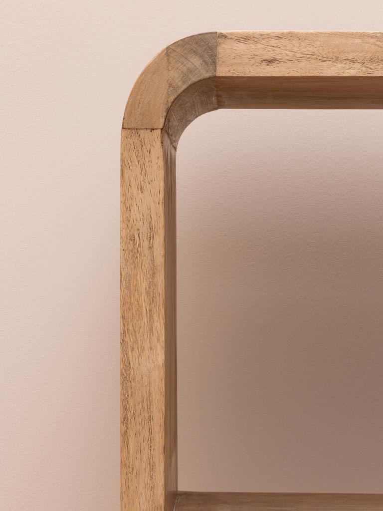 La étagère arrondie 4 étages Losail incarne avec raffinement l’union idéale entre esthétique nordique et expertise artisanale signature de Chehoma. Façonnée minutieusement en manguier massif, elle captive par son rendu sincère et organique. Sa nuance beige chaleureuse et rayonnante rappelle la pureté du bois naturel, s’harmonisant sans effort avec divers ambiances intérieures. Ses quatre plateaux spacieux procurent un rangement fonctionnel et ventilé, idéal pour livres, décorations et végétaux. La courbure fluide de sa structure infuse douceur et équilibre architectural. Grâce à sa proportion maîtrisée et son exécution soignée, la étagère arrondie 4 étages Losail s’adapte parfaitement à un séjour baigné de lumière comme à une alcôve sereine. Chaque œuvre Chehoma fusionne ainsi élégance et utilité avec finesse.
