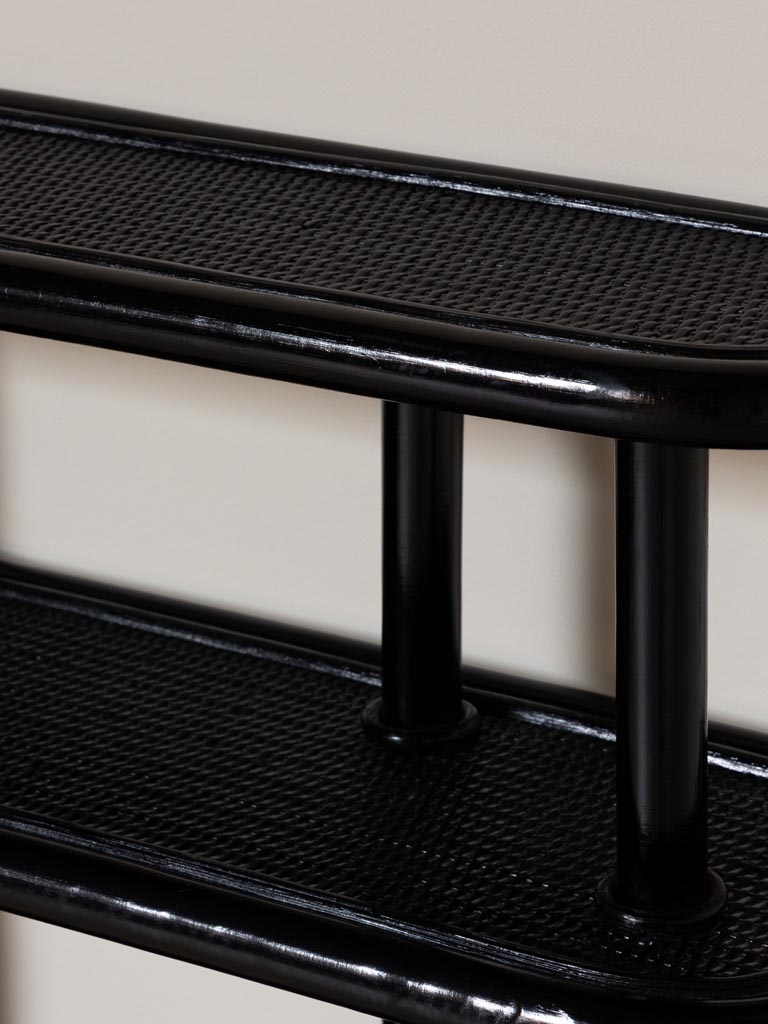 Que ce soit dans un séjour, un vestibule ou une pièce à coucher, l’étagère murale Black Pigmento s’implante avec aisance. Sa trame en rotin confère une matière vivante qui tempère la rigidité d’un mur. Par ailleurs, sa nuance noir forge un duo subtil avec des textures brutes telles que le bois blond, les tissages ou la poterie. Elle se prête aussi à l’union avec des pièces artisanales pour amplifier l’âme déco ethnique chic. Son architecture aérée propose un rangement esthétique valorisant ouvrages, végétaux ou trésors intimes. De la sorte, elle s’impose comme un atout multifacette s’harmonisant à divers cadres. Son esthétique marquée structure un mur sans alourdir l’ensemble.