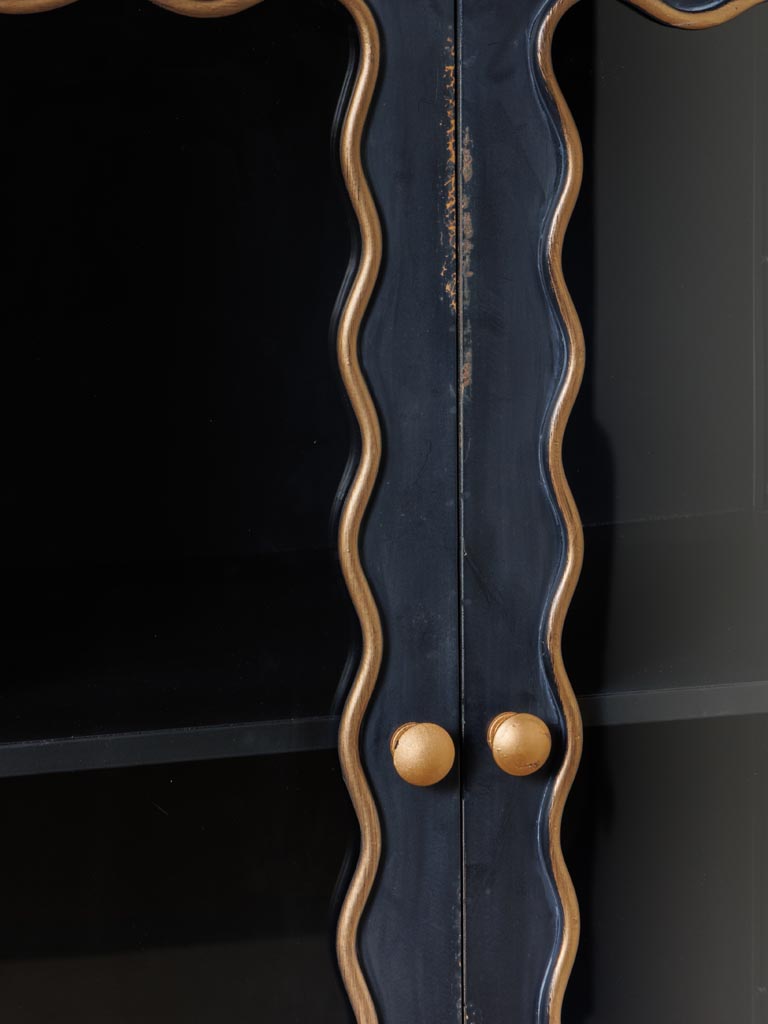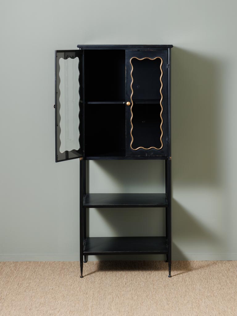 Le design de l’étagère Sagan est marqué par sa structure en métal noir qui soutient des étagères en verre délicatement encadrées de doré. Ce mariage de matériaux crée une pièce à la fois solide et aérienne, capable de mettre en valeur vos objets décoratifs tout en permettant une vue dégagée grâce aux étagères en verre. La couleur noir du métal ajoute une touche de modernité et de sophistication, tandis que le doré du cadre accentue l’aspect luxueux et classique du meuble. Ce design permet à l’étagère de se fondre parfaitement dans un environnement de déco vintage, tout en ajoutant une note de glamour et de distinction.