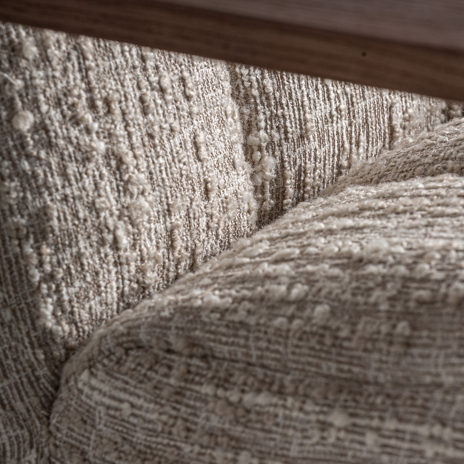 Le fauteuil Habouey de Vical se distingue par son design unique et son allure raffinée. En effet, sa structure en bois de pin et ses détails en acier doré lui confèrent une élégance indéniable. De plus, son revêtement en polyester beige chiné ajoute une touche de sophistication tout en garantissant confort et résistance. Ce modèle, avec sa silhouette enveloppante, s’intègre parfaitement dans une déco vintage. Par ailleurs, les nuances de marron et beige se marient harmonieusement, créant une ambiance chaleureuse et accueillante. Ainsi, il devient l’élément central de votre salon, attirant tous les regards et suscitant l’admiration de vos invités.