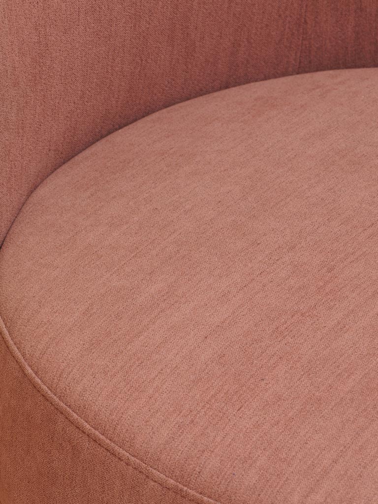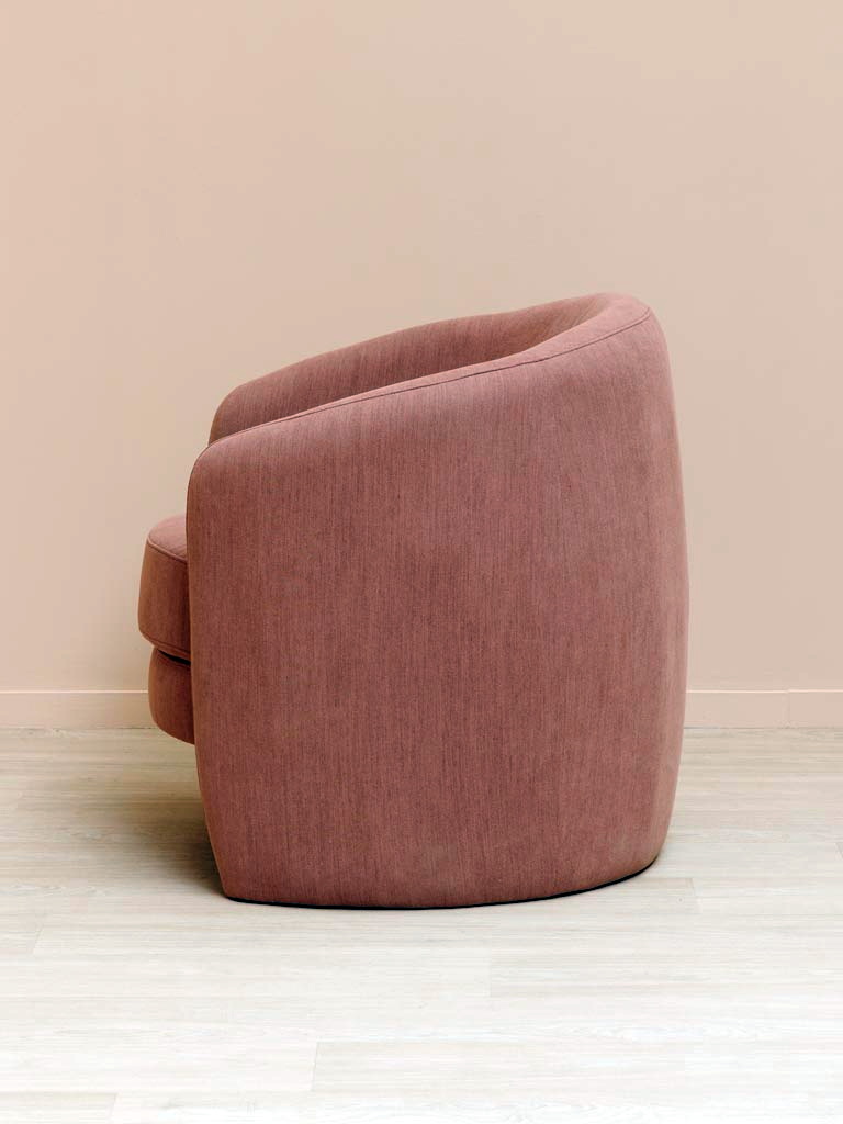 Sa couleur rose douce et tendance apporte une touche de fraîcheur et de féminité à votre espace de vie, évoquant les teintes pastel populaires des décennies passées. La forme ronde de ce fauteuil ajoute une touche d’originalité et de caractère, lui conférant un aspect unique et élégant.