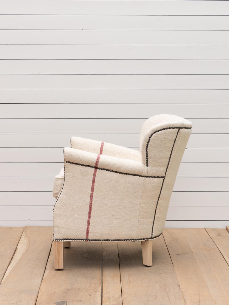 - Tissu Unique : Chaque fauteuil est fabriqué à partir de véritables sacs à farine d’époque, ce qui garantit que chaque pièce est unique. Les variations subtiles dans la texture et la couleur racontent une histoire riche, et l’authenticité de ces matériaux assure que votre fauteuil sera véritablement unique.