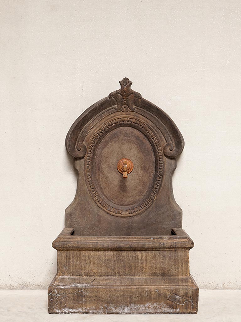 Jolie fontaine murale Vaucluse en pierre reconstituée de chez Chehoma idéale pour décorer votre jardin.