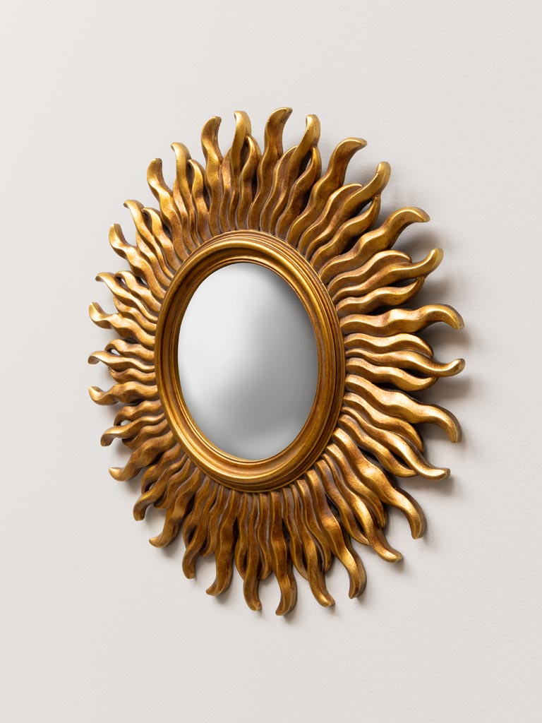 Le miroir convexe enflammé de la marque Chehoma attire immédiatement le regard grâce à son design unique et raffiné. Ce miroir, inspiré des objets anciens, s’intègre parfaitement dans une décoration intérieure de style déco brocante. Dès l’entrée, il capte la lumière et la diffuse dans toute la pièce, créant une atmosphère chaleureuse et accueillante. De plus, sa forme convexe offre une perspective originale, agrandissant visuellement l’espace tout en apportant une touche d’originalité.