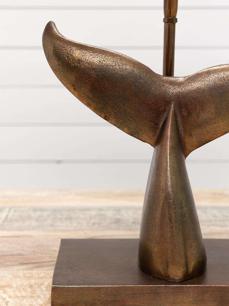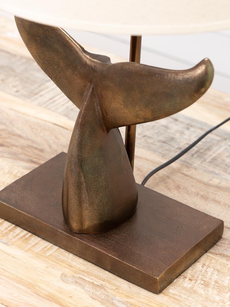 La lampe à poser queue de baleine de Chehoma évoque immédiatement l’horizon marin et les silhouettes majestueuses des cétacés disparaissant dans les vagues. Sa base représente une queue de baleine dressée, finement stylisée, qui semble surgir de la surface pour soutenir l’abat‑jour. Travaillée dans un Aluminium robuste mais léger, cette structure affiche un beau relief et une finition délicatement Doré qui capte la lumière même lorsque la lampe est éteinte. Posée sur une table d’appoint, un chevet ou une console, elle devient ainsi un véritable totem décoratif, parfait pour insuffler un esprit de déco bord de mer sans tomber dans le cliché.