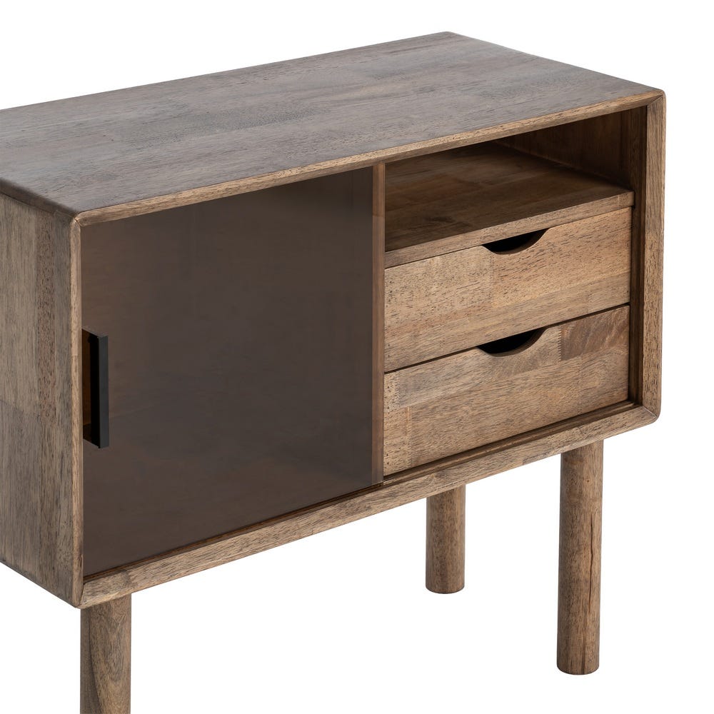 Le meuble d’appoint bois verre marron Amy 2 incarne l’élégance vintage intemporelle. Confectionné en Verre trempé et Bois de caoutchouc, ce meuble allie solidité et légèreté visuelle. Sa teinte Marron authentique met en lumière les veines naturelles du bois. Avec ses pieds de 30cm et son plateau de 37×10,5cm, il optimise intelligemment l’espace. Le tiroir 37×11,5cm offre un rangement discret pour vos objets du quotidien. Ce meuble Ixia séduit par son charme rétro incontestable.