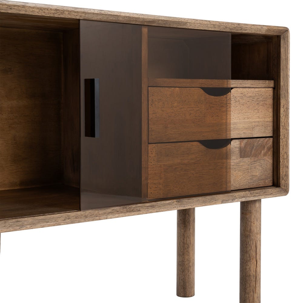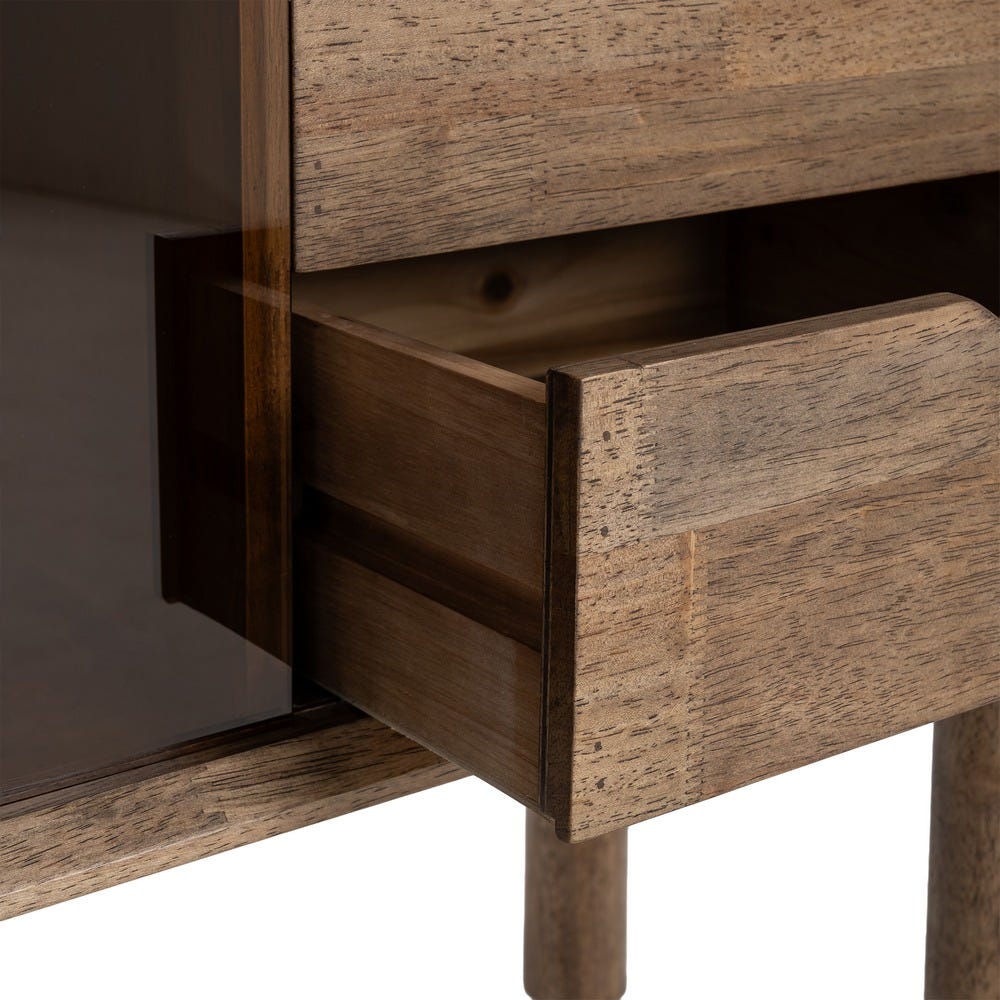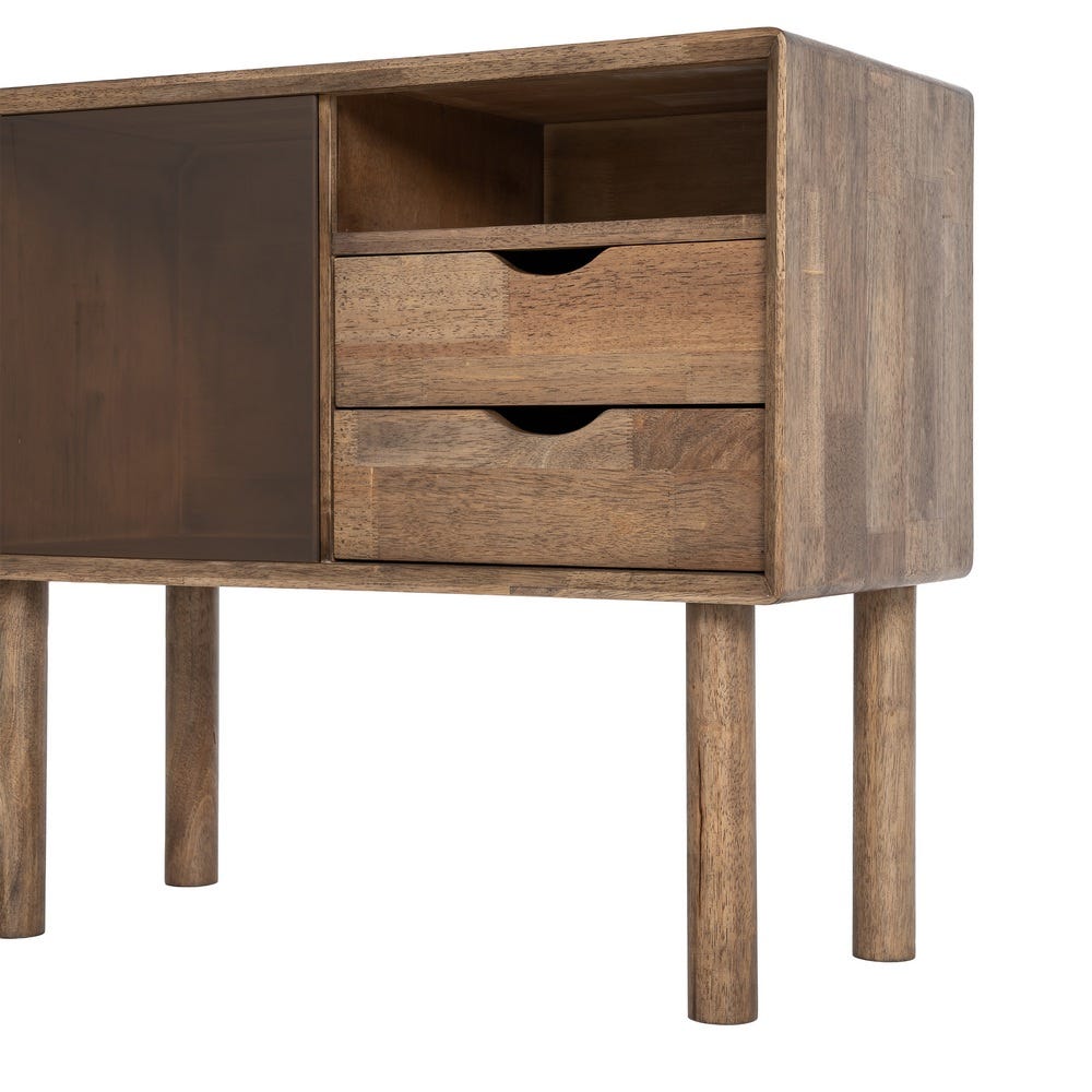 Véritable atout décoratif, il s’intègre harmonieusement dans une déco vintage chaleureuse et raffinée. L’alliance du Bois patiné et du Verre évoque ces meubles chinés et restaurés avec passion. L’assemblage simple des pieds et le tiroir spacieux facilitent son installation et son utilisation. La couleur Marron crée une atmosphère cosy et intemporelle. Ce meuble Ixia valorise chaque détail sans surcharger votre intérieur.