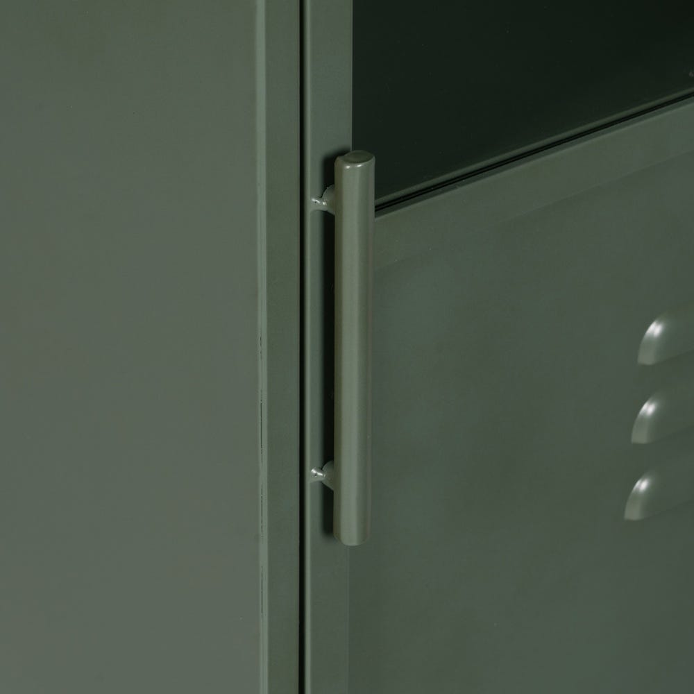 Par ailleurs, il trouve sa place naturelle dans une déco atelier authentique et minimaliste. Le Métal patiné et le Verre évoquent les anciens entrepôts rénovés chargés d’histoire. Sa porte élégante met en scène les détails mécaniques tandis que ses étagères bien espacées accueillent outils ou livres avec élégance. La teinte Vert apaise et vivifie simultanément l’ambiance industrielle. Ce meuble Ixia fusionne authenticité et fonctionnalité atelier avec grâce.