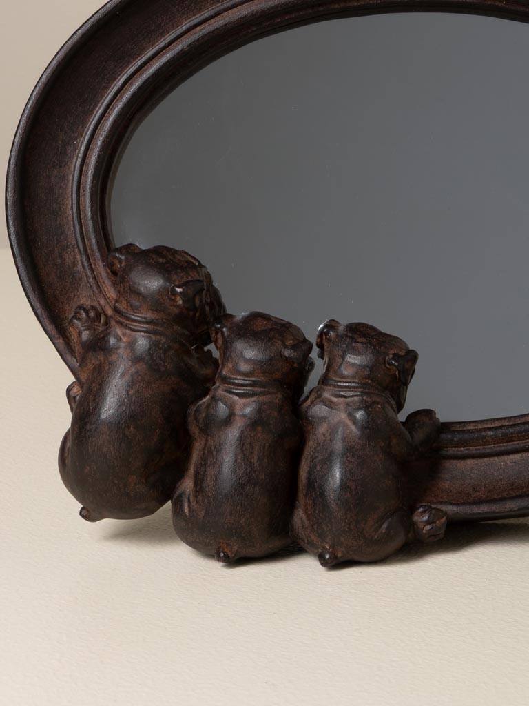 Par ailleurs, le miroir à poser 3 chiens captive par son style vivant et expressif. La Résine sculpte des contours fins, et la teinte marron diffuse une atmosphère conviviale. En déco charme, il se marie à merveille avec sculptures artisanales, étoffes brutes ou bois patinés. Ce Miroir Chehoma capte l’attention comme un aimant visuel.