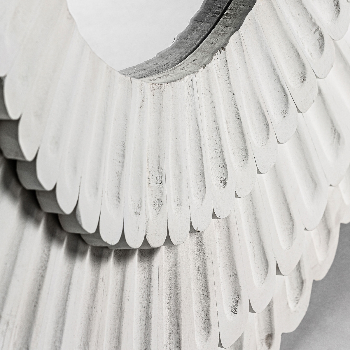 Le Miroir rond manguier Jeyere de Vical séduit par son cadre sculpté en manguier massif, dont les pétales délicatement taillés créent un effet floral élégant et raffiné. Sa teinte blanche adoucit l’ensemble, lui conférant une allure lumineuse et aérienne qui s’intègre parfaitement dans une déco charme. Grâce à son design travaillé, il capte la lumière et l’amplifie, agrandissant ainsi visuellement votre espace tout en apportant une note naturelle et apaisante. Sa forme ronde harmonise les lignes d’une pièce, créant une ambiance accueillante et délicate, idéale pour un salon, une chambre ou une entrée.