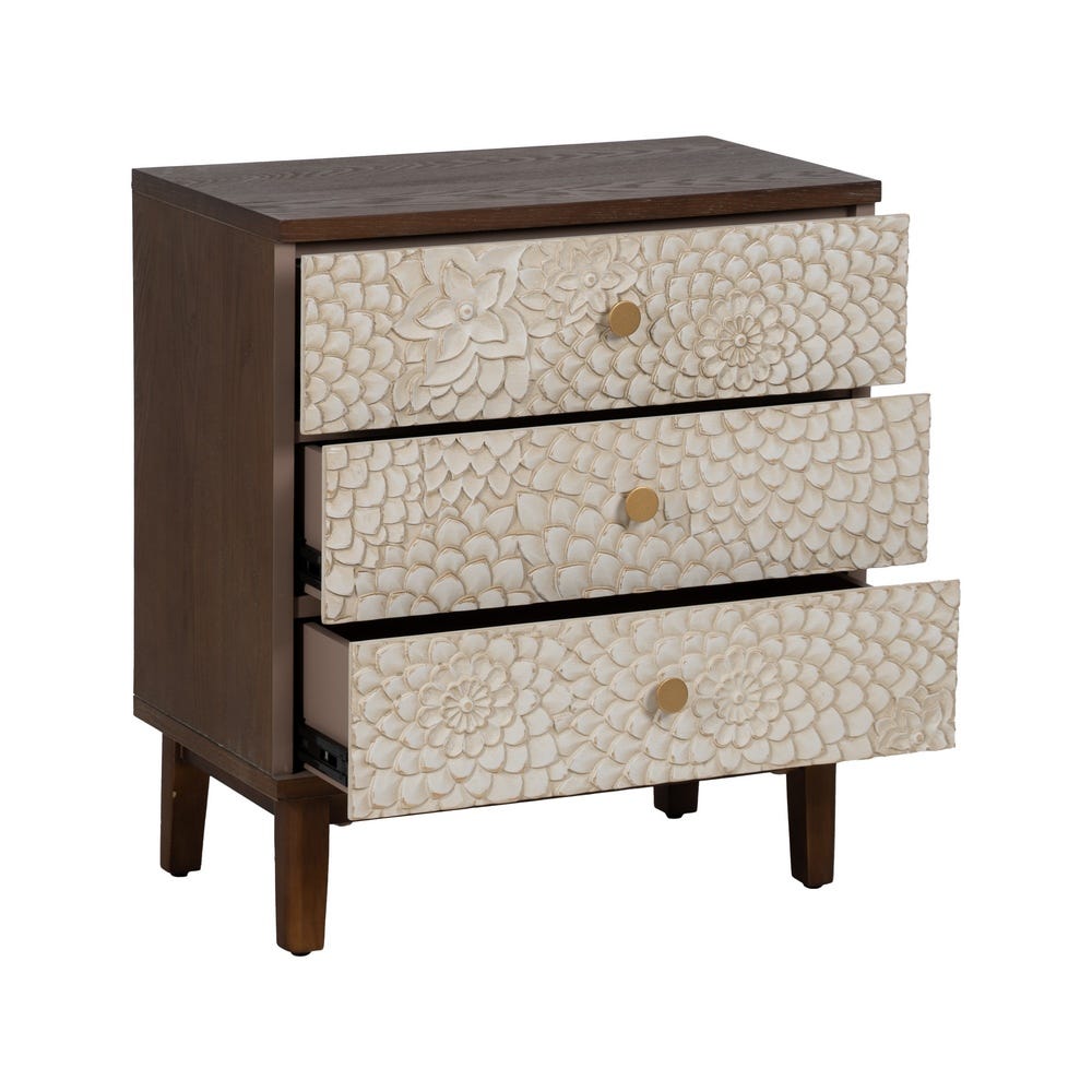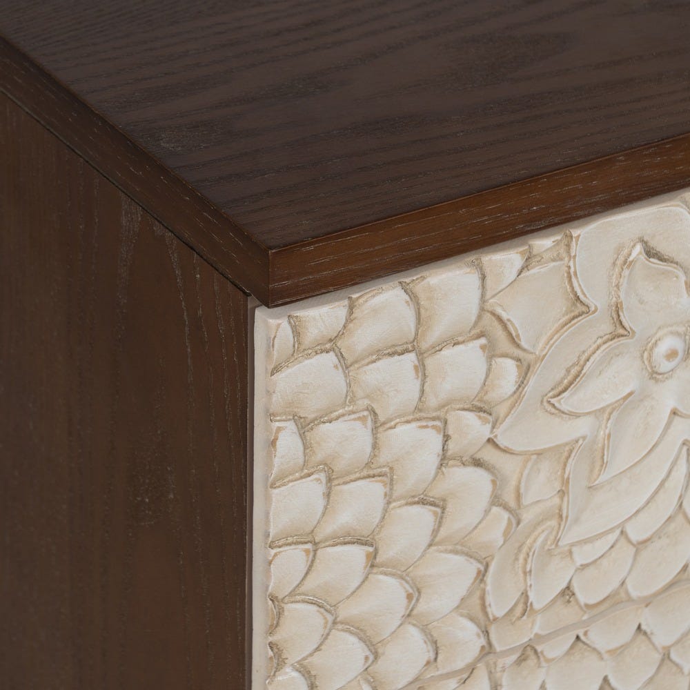 Elle s’harmonise parfaitement dans une déco ethnique chic bohème et raffinée. Le Bois pin texturé et DM rappellent un artisanat nomade patiné avec douceur. Tiroirs spacieux cachent vos essentiels, et le contraste Blanc-Marron diffuse une lumière cosy et exotique. Pieds relevés aident à la fluidité quotidienne. Cette table Ixia marie légèreté et chaleur tribale.