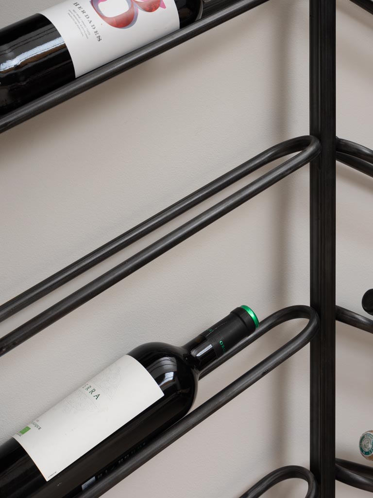 Le design mural permet d’économiser de l’espace et de garder les bouteilles à portée de main. Installez ce porte bouteilles dans votre cuisine, votre salle à manger ou votre bar pour créer un effet visuel intéressant tout en organisant votre collection de bouteilles.