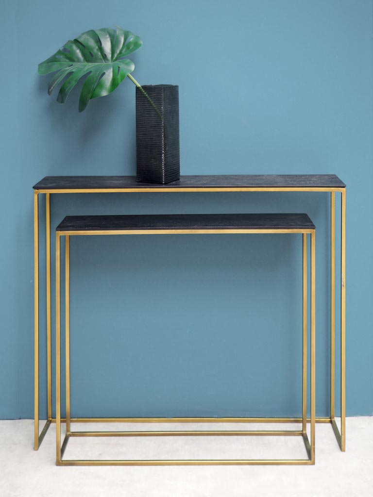 Cette set 2 consoles manguier métal doré vous séduira par son style à la fois déco design et art déco.