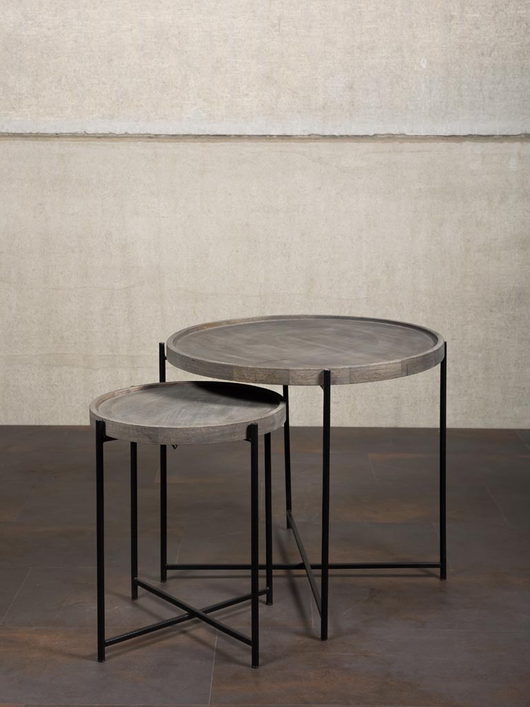 Set 2 tables d’appoint bois grisé
