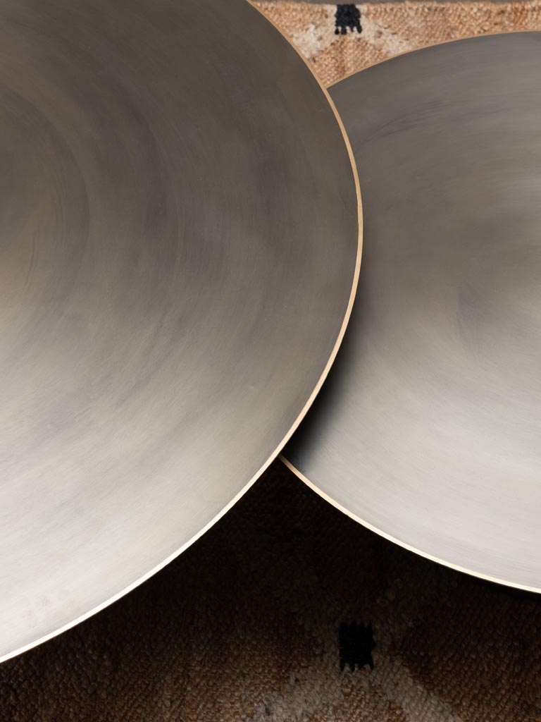Ces deux tables basses offrent une grande polyvalence, ce qui les rend idéales pour optimiser l’espace. Utilisées ensemble ou séparément, elles permettent de jouer avec les volumes et de créer un agencement sur mesure. Leur surface en métal gris leur confère un aspect à la fois minimaliste et fonctionnel, tout en résistant à l’usure du quotidien. Parfaites pour accueillir vos objets décoratifs, elles s’adaptent aussi bien dans un espace de détente que dans un coin lecture, tout en apportant une touche résolument tendance.