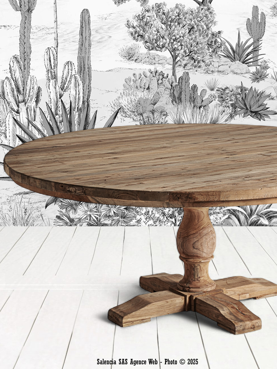 Enfin, il est important de souligner que la table à manger Gyor de Vical n’est pas seulement un meuble, mais une véritable pièce maîtresse pour votre salle à manger. Elle offre un espace convivial où famille et amis peuvent se rassembler et partager des moments mémorables. De surcroît, son allure intemporelle assure qu’elle restera un élément central de votre décoration intérieure pour de nombreuses années. En somme, la combinaison de bois de teck recyclé, de finitions marron et doré, et son style déco campagne chic font de la Table à manger Vical un choix exceptionnel pour ceux qui recherchent à la fois qualité et esthétique.