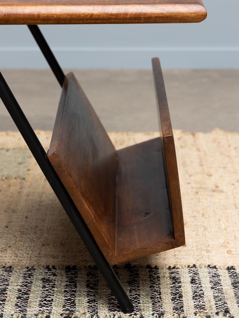 La table avec porte revues Easypeasy de Chehoma incarne le charme rétro de la déco vintage. Avec son design ingénieux alliant métal et manguier, cette table offre non seulement un espace pratique pour vos lectures préférées, mais aussi un accent décoratif dans votre intérieur.