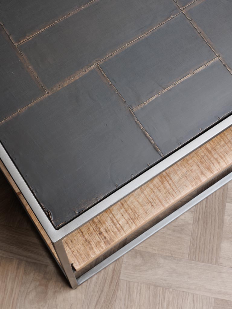 Le design de la table Patchwork Chehoma est rehaussé par une palette de couleurs élégantes, où les nuances de beige et de gris se marient harmonieusement. Ces teintes neutres permettent à la table de s’intégrer facilement dans divers décors tout en apportant une note de sophistication discrète. Le mélange de matériaux et de couleurs crée un effet patchwork subtil qui est à la fois visuellement intéressant et extrêmement versatile, s’adaptant à une ambiance déco atelier ou à tout autre style moderne.