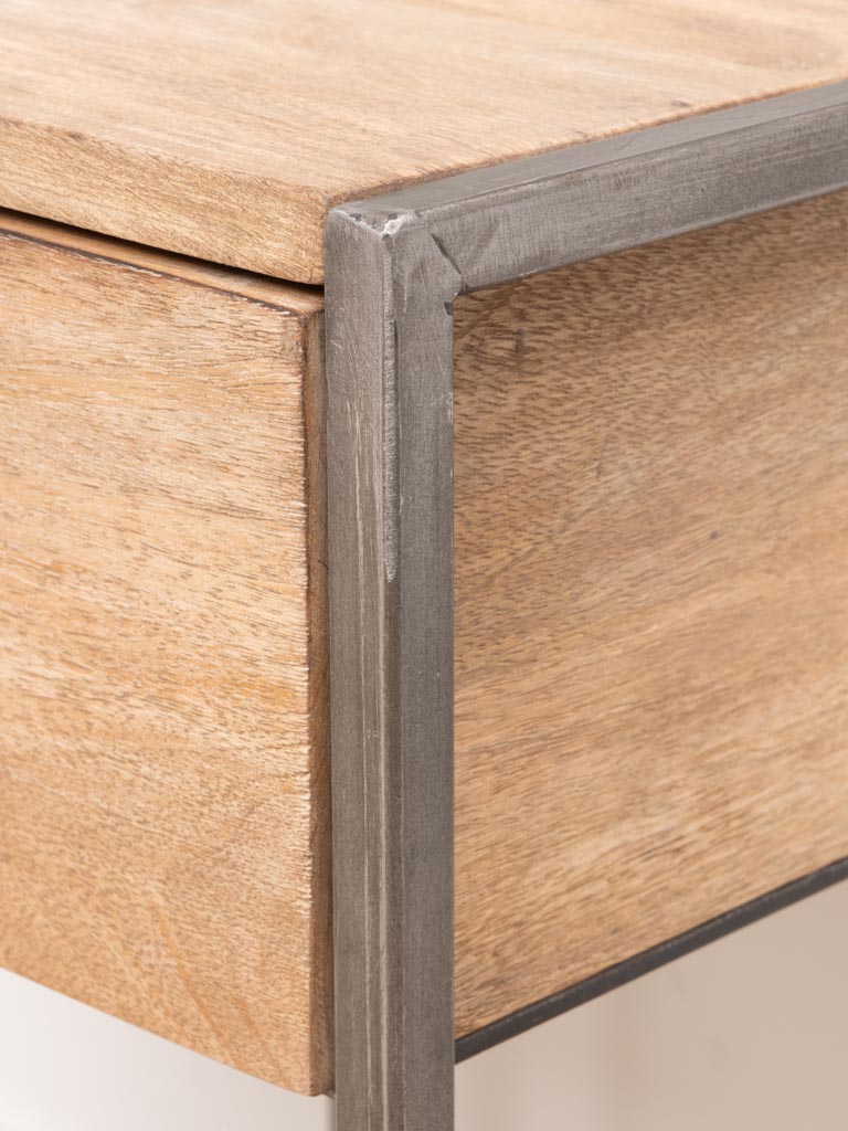 Bien pratique avec son tiroir pour y ranger livres et revues, ce chevet Stari en bois de manguier et métal patiné s’inscrit la tendance déco. Il trouvera sa place dans une ambiance design ou classique. On pourra aussi s’en servir comme bout de canapé ou petite table d’appoint. On aime ses lignes sobres et élégantes. Pieds en métal style métal vieilli. Chevet Stari Chehoma. Découvrez la ligne de mobilier Chehoma : table basse, console, bureau…