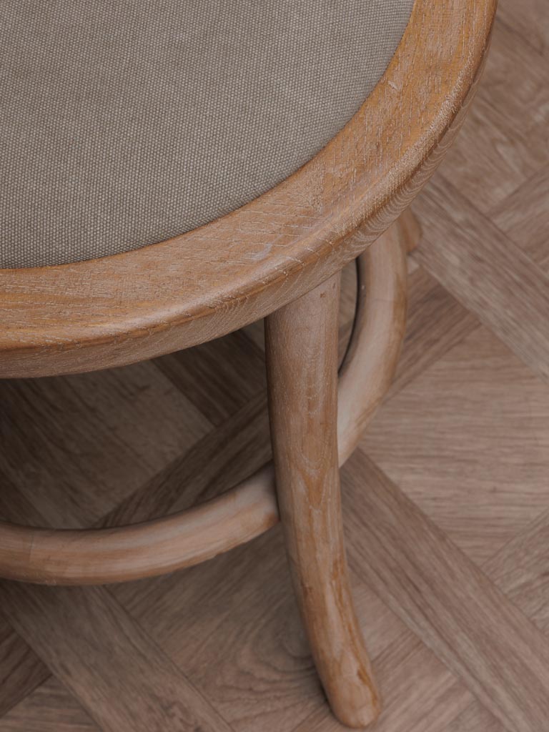 Le design du tabouret Jude met en avant la beauté du bois naturel tout en garantissant une robustesse à toute épreuve. Ce tabouret est conçu pour être à la fois pratique et élégant, avec une assise en coton qui assure un confort exceptionnel tout en restant facile à entretenir. La couleur beige de l’assise et du bois crée une harmonie visuelle agréable, apportant une touche de douceur et de naturel qui enrichit le décor sans être envahissante.
