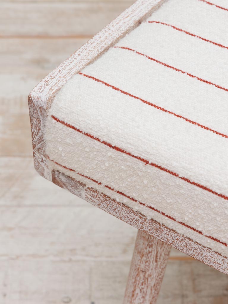 Optez pour l’authenticité et le charme du tabouret patiné blanc ligné bordeaux Hendaye de CHEHOMA, et créez un coin de paradis inspiré de la mer, où règnent la détente et la sérénité.